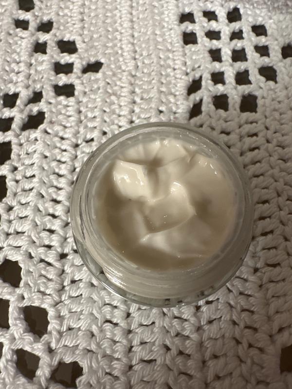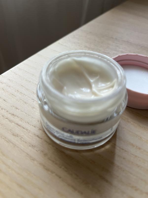 schöne cremige Textur, zieht schnell ein, man benötigt wenig , es riecht nicht aufdringlich, reizt durch die Weintraube überhaupt nicht, Vitamin C und Retinolprodukte reizen eher die Haut
